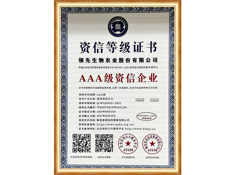 AAA級(jí)重質(zhì)量守信用企業(yè)