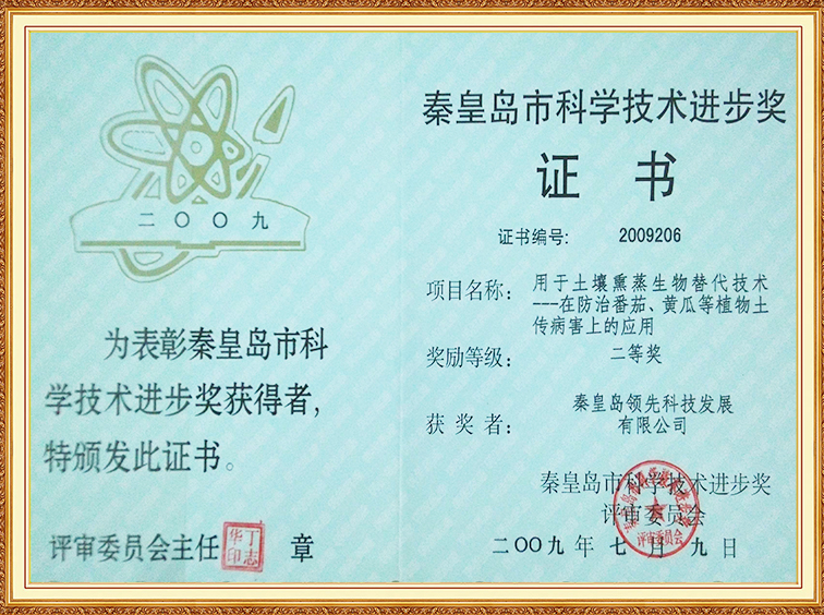 土壤熏蒸在防治番茄、黃瓜土傳病害上的應(yīng)用—秦皇島科學(xué)進(jìn)步二等獎